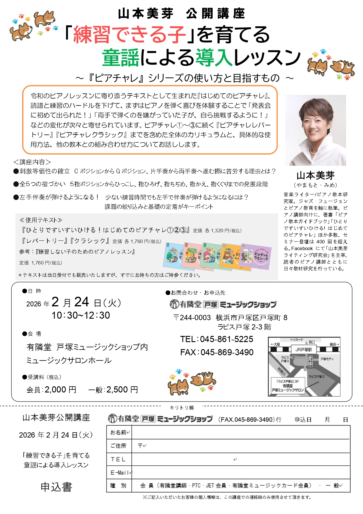 | 受講料 | 一般:2,500円(税込) PTC・JET会員・有隣堂講師・ミュージックカード会員:2,000円(税込) |